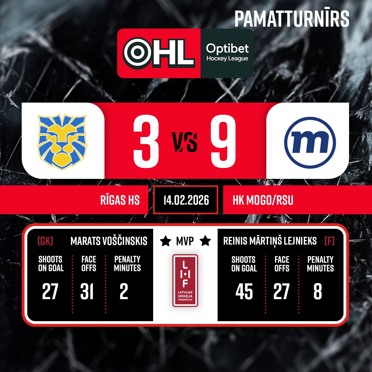 Piespēles: #87 Gints MEIJA, #7 Deivids SARKANIS